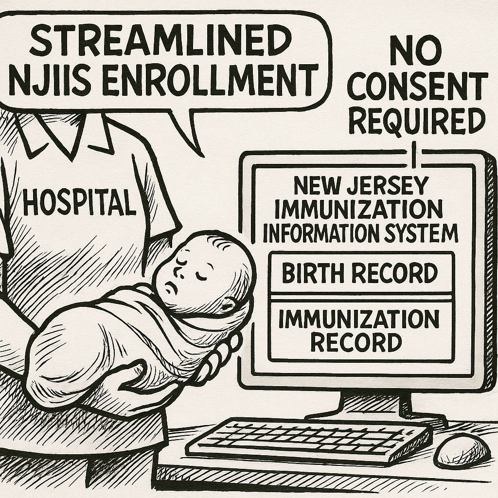 The NJDOH may not call it automatic enrollment — but if every birth and every vaccination ends up in the same database without consent, the label hardly matters.