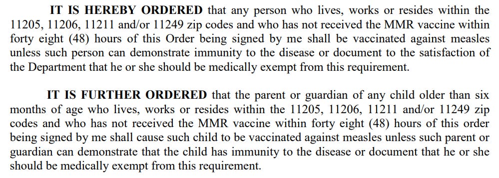 It must be understood that this entity, the NYC Health Department, is the same one that passed the very first and at this point, the only, absolute mandate to vaccinate.